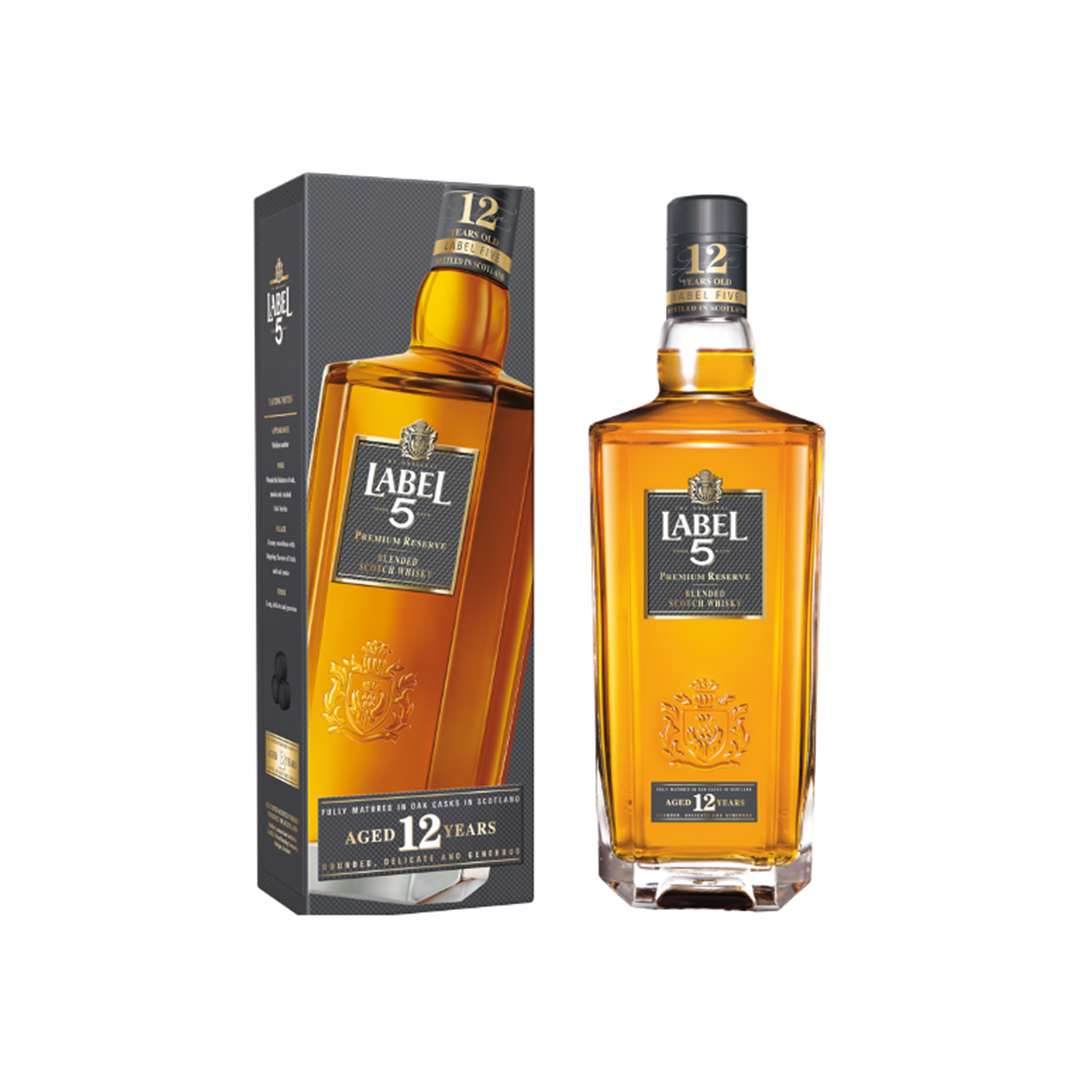 Label 5 - ვისკი - 40% - 12 წლიანი - 0,7 ლიტრი მინიმუმ: 1 ც